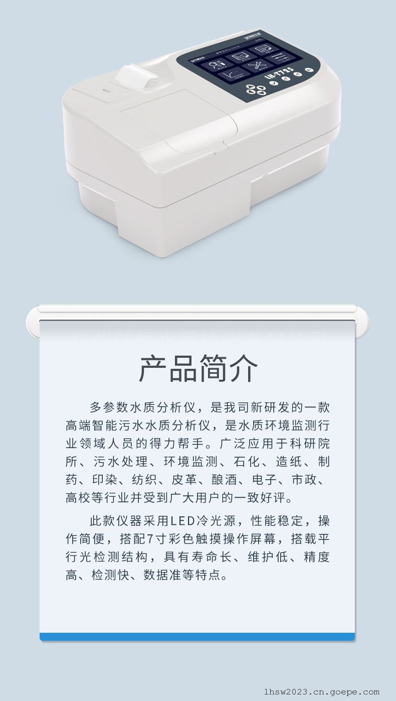 多参数水质分析仪(COD)是我公司隆重推出的智能水质快速分析仪器,仪器采用进口高亮度准平行LED冷光源和德国先进的光学结构设计,光学性能和检测效果极佳; 人性化的操作界面、简单的测量方法和大屏幕触摸彩屏显示及操作,使用起来都得心应手,是科学研究、数据分析、水质检测的得力助手,广泛应用于科研院所、污水处理、环境 监测、石化、造纸、制药、印染、纺织、皮革、酿酒、电子、市政、高校等行业并受到广大用户的一致好评。